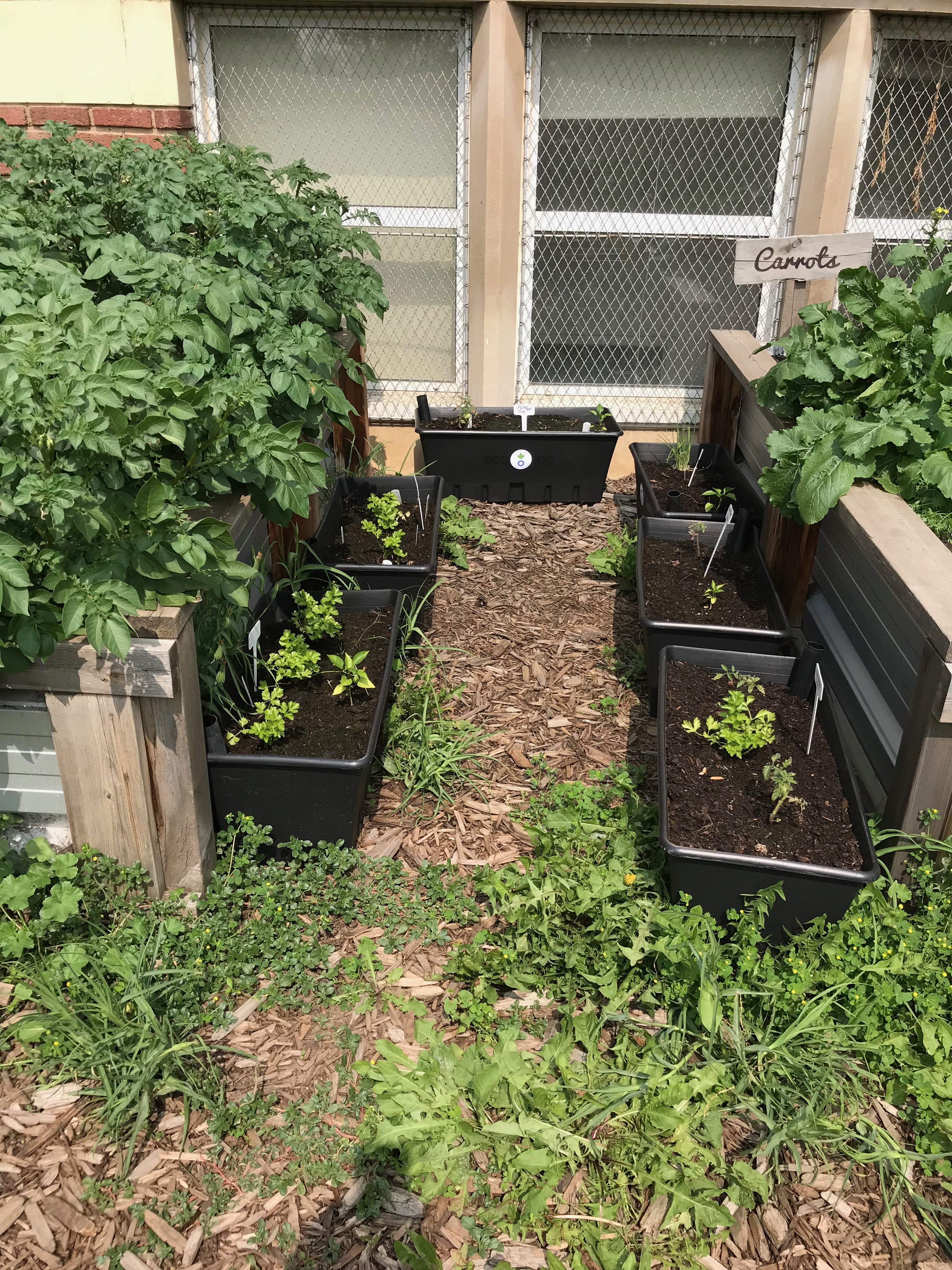 ![]() July 2018: The following pictures were taken at the end of June. Even though you must peer through mesh, you can see that the boxes have been Apparently, now that school is out, the care of the gardens will full under the tender loving care of volunteer parents. More pictures will be taken throughout the summer and hopefully one showing the harvest about to be gathered.