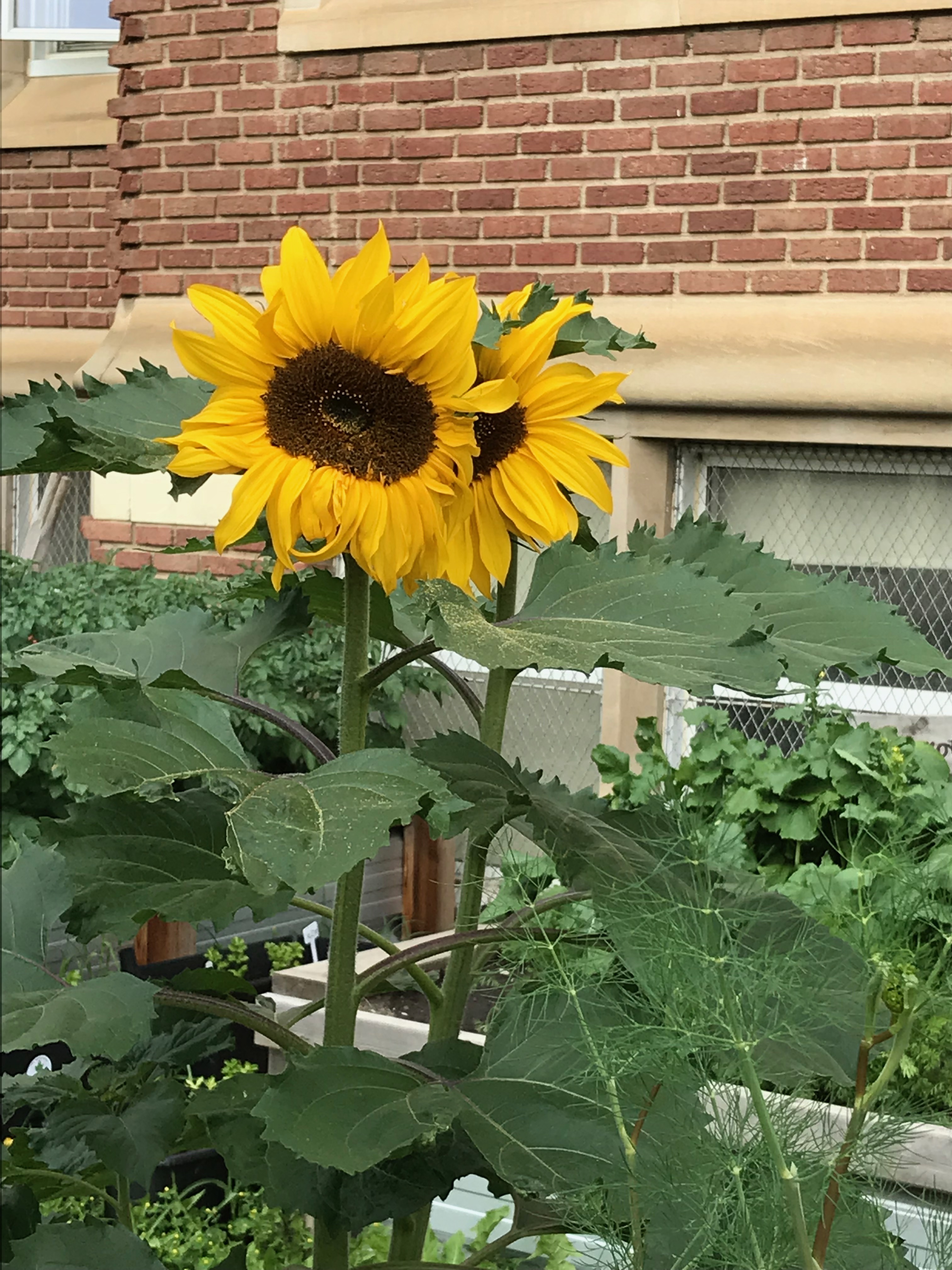 Did you ask for [or need] parent involvement... No. Those who chose involvement had stopped by our Open House and were excited by seeing the garden club helping prospective students plant beans. Brad did a great job of promoting the gardens through parent council and in the media, so it was through word of mouth. Summer help is the hardest part--a program needs some adults and responsible students ready to keep it growing. Someone must have watered and cared for the garden during 'no school' periods? Yes, the first summer it was me and a student who took turns coming by to water it. The second summer, before I was off to Centre High, I continued to help early in the summer and our amazing custodians and Leslie took care of the garden for the remainder of the summer.